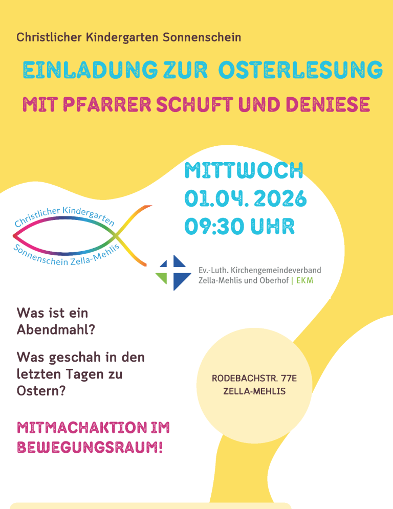 Am 02. April 2026 feiern wir am Morgen in unserem christlichen Kindergarten Sonnenschein eine kleine Osterandacht mit unseren Kindern.